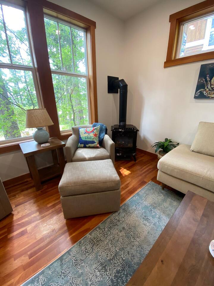 Keep it simple at this peaceful and centrally-located place. Brand new listing, freshly designed and furnished to give you the feeling of your home away from home and the best memories to share with family and friends. Starting with our amazing hot tub, s'mores in our firepit, relaxing in front of the cozy fireplace or all together playing games in the bonus room. So many amazing things to do before you have even explored Orcas Island.